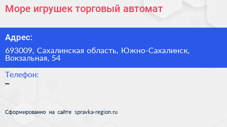 Море игрушек, торговый автомат по адресу 693009, Сахалинская область, Южно-Сахалинск, Вокзальная, 54 в дальнейшем Организация, размещена в следующих категориях: