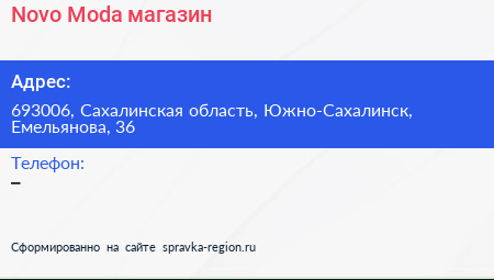 Novo Moda, магазин по адресу 693006, Сахалинская область, Южно-Сахалинск, Емельянова, 36 в дальнейшем Организация, размещена в следующих категориях: