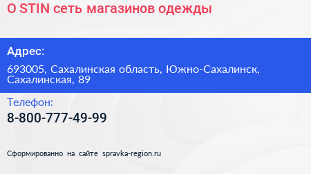 O`STIN, сеть магазинов одежды по адресу 693005, Сахалинская область, Южно-Сахалинск, Сахалинская, 89 в дальнейшем Организация, размещена в следующих категориях: