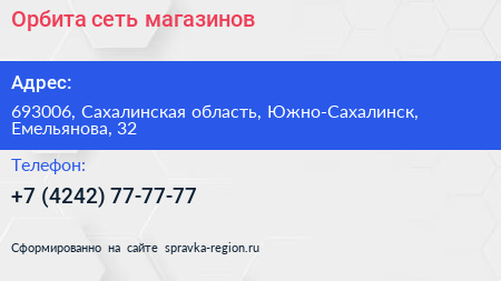Орбита, сеть магазинов по адресу 693006, Сахалинская область, Южно-Сахалинск, Емельянова, 32 в дальнейшем Организация, размещена в следующих категориях: