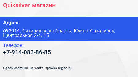 Quiksilver, магазин по адресу 693014, Сахалинская область, Южно-Сахалинск, Центральная 2-я, 1Б в дальнейшем Организация, размещена в следующих категориях: