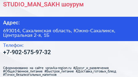 STUDIO_MAN_SAKH, шоурум по адресу 693014, Сахалинская область, Южно-Сахалинск, Центральная 2-я, 1Б в дальнейшем Организация, размещена в следующих категориях:
