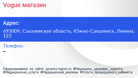 Vogue, магазин по адресу 693009, Сахалинская область, Южно-Сахалинск, Ленина, 123 в дальнейшем Организация, размещена в следующих категориях: