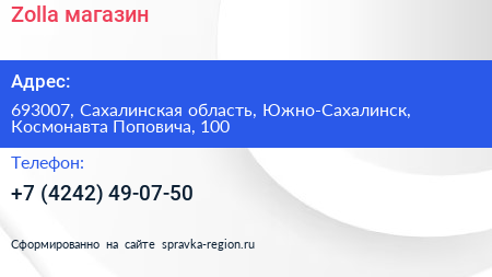 Zolla, магазин по адресу 693007, Сахалинская область, Южно-Сахалинск, Космонавта Поповича, 100 в дальнейшем Организация, размещена в следующих категориях: