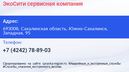 ЭкоСити, сервисная компания по адресу 693008, Сахалинская область, Южно-Сахалинск, Западная, 95 в дальнейшем Организация, размещена в следующих категориях: