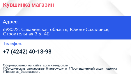 Кувшинка, магазин по адресу 693022, Сахалинская область, Южно-Сахалинск, Строительная 3-я, 4Б в дальнейшем Организация, размещена в следующих категориях: