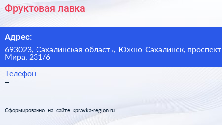 Фруктовая лавка по адресу 693023, Сахалинская область, Южно-Сахалинск, проспект Мира, 231/6 в дальнейшем Организация, размещена в следующих категориях:
