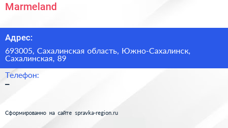 Marmeland по адресу 693005, Сахалинская область, Южно-Сахалинск, Сахалинская, 89 в дальнейшем Организация, размещена в следующих категориях: