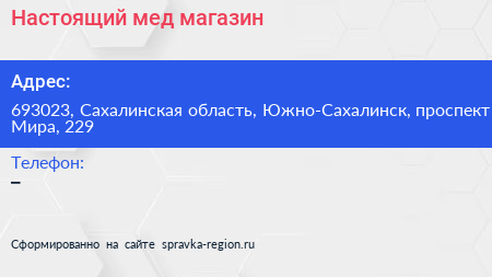 Настоящий мед, магазин по адресу 693023, Сахалинская область, Южно-Сахалинск, проспект Мира, 229 в дальнейшем Организация, размещена в следующих категориях: