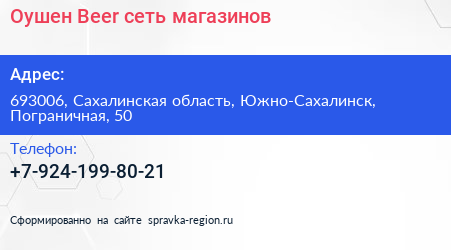 Оушен Beer, сеть магазинов по адресу 693006, Сахалинская область, Южно-Сахалинск, Пограничная, 50 в дальнейшем Организация, размещена в следующих категориях: