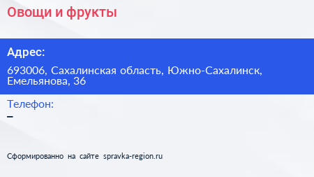 Овощи и фрукты + по адресу 693006, Сахалинская область, Южно-Сахалинск, Емельянова, 36 в дальнейшем Организация, размещена в следующих категориях:
