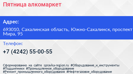 Пятница, алкомаркет по адресу 693010, Сахалинская область, Южно-Сахалинск, проспект Мира, 95 в дальнейшем Организация, размещена в следующих категориях: