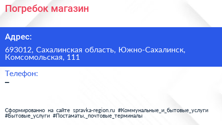 Погребок, магазин по адресу 693012, Сахалинская область, Южно-Сахалинск, Комсомольская, 111 в дальнейшем Организация, размещена в следующих категориях: