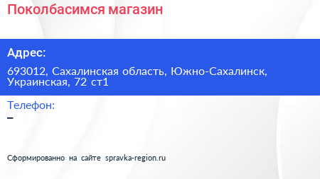 Поколбасимся?, магазин по адресу 693012, Сахалинская область, Южно-Сахалинск, Украинская, 72 ст1 в дальнейшем Организация, размещена в следующих категориях: