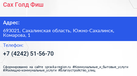 Сах Голд Фиш по адресу 693021, Сахалинская область, Южно-Сахалинск, Комарова, 1 в дальнейшем Организация, размещена в следующих категориях: