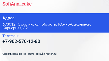 SofiAnn_cake по адресу 693012, Сахалинская область, Южно-Сахалинск, Карьерная, 39 в дальнейшем Организация, размещена в следующих категориях: