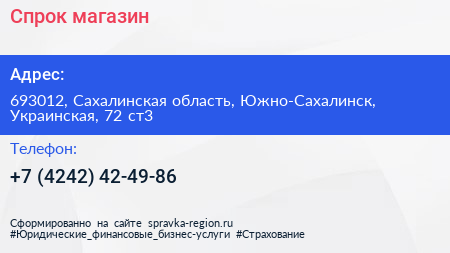 Спрок, магазин по адресу 693012, Сахалинская область, Южно-Сахалинск, Украинская, 72 ст3 в дальнейшем Организация, размещена в следующих категориях:
