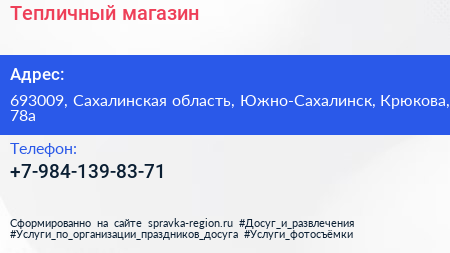 Адрес: Сахалинская область, Южно-Сахалинск, Сахалинская, 39
