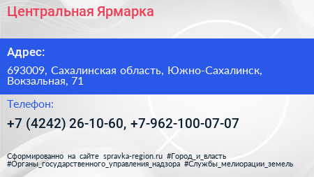 Центральная Ярмарка по адресу 693009, Сахалинская область, Южно-Сахалинск, Вокзальная, 71 в дальнейшем Организация, размещена в следующих категориях: