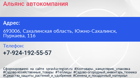 Альянс, автокомпания по адресу 693006, Сахалинская область, Южно-Сахалинск, Пуркаева, 116 в дальнейшем Организация, размещена в следующих категориях: