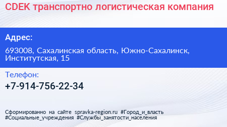 CDEK, транспортно-логистическая компания по адресу 693008, Сахалинская область, Южно-Сахалинск, Институтская, 15 в дальнейшем Организация, размещена в следующих категориях: