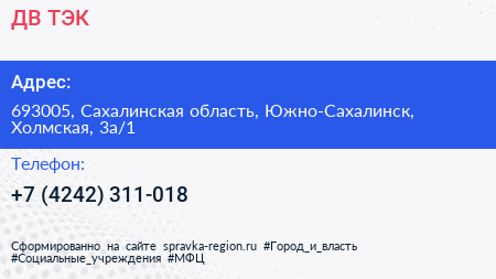 ДВ ТЭК по адресу 693005, Сахалинская область, Южно-Сахалинск, Холмская, 3а/1 в дальнейшем Организация, размещена в следующих категориях: