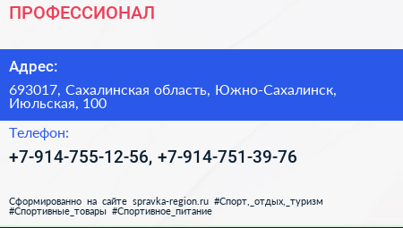 ПРОФЕССИОНАЛ по адресу 693017, Сахалинская область, Южно-Сахалинск, Июльская, 100 в дальнейшем Организация, размещена в следующих категориях:
