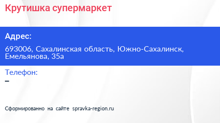 Крутишка, супермаркет по адресу 693006, Сахалинская область, Южно-Сахалинск, Емельянова, 35а в дальнейшем Организация, размещена в следующих категориях:
