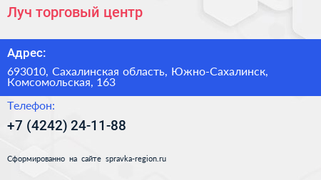 Луч, торговый центр по адресу 693010, Сахалинская область, Южно-Сахалинск, Комсомольская, 163 в дальнейшем Организация, размещена в следующих категориях: