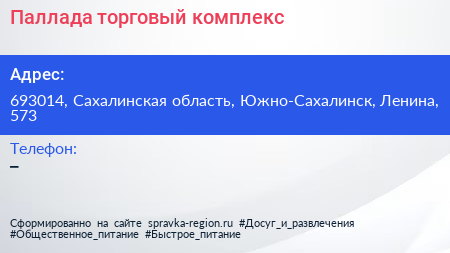 Паллада, торговый комплекс по адресу 693014, Сахалинская область, Южно-Сахалинск, Ленина, 573 в дальнейшем Организация, размещена в следующих категориях: