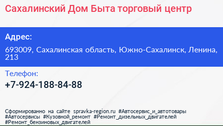 Сахалинский Дом Быта, торговый центр по адресу 693009, Сахалинская область, Южно-Сахалинск, Ленина, 213 в дальнейшем Организация, размещена в следующих категориях: