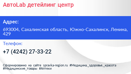 АвтоLab, детейлинг-центр по адресу 693004, Сахалинская область, Южно-Сахалинск, Ленина, 429 в дальнейшем Организация, размещена в следующих категориях: