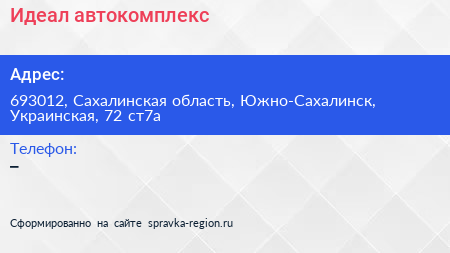 Идеал, автокомплекс по адресу 693012, Сахалинская область, Южно-Сахалинск, Украинская, 72 ст7а в дальнейшем Организация, размещена в следующих категориях: