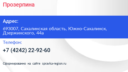 Прозерпина по адресу 693007, Сахалинская область, Южно-Сахалинск, Дзержинского, 44а в дальнейшем Организация, размещена в следующих категориях: