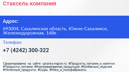 Стаксель, компания по адресу 693004, Сахалинская область, Южно-Сахалинск, Железнодорожная, 168е в дальнейшем Организация, размещена в следующих категориях: