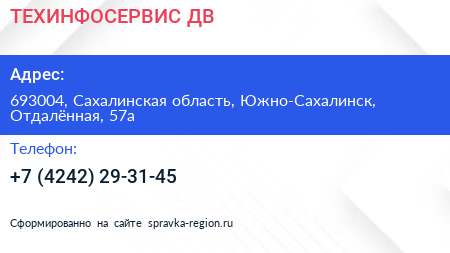 ТЕХИНФОСЕРВИС ДВ по адресу 693004, Сахалинская область, Южно-Сахалинск, Отдалённая, 57а в дальнейшем Организация, размещена в следующих категориях: