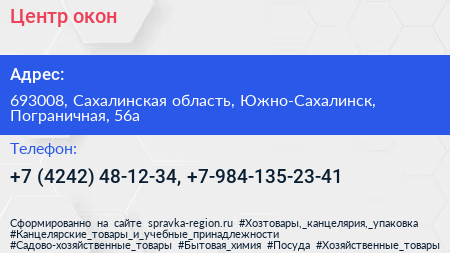 Центр окон по адресу 693008, Сахалинская область, Южно-Сахалинск, Пограничная, 56а в дальнейшем Организация, размещена в следующих категориях: