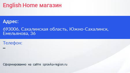 English Home, магазин по адресу 693006, Сахалинская область, Южно-Сахалинск, Емельянова, 36 в дальнейшем Организация, размещена в следующих категориях: