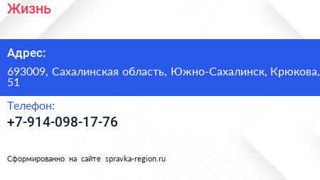 Жизнь по адресу 693009, Сахалинская область, Южно-Сахалинск, Крюкова, 51 в дальнейшем Организация, размещена в следующих категориях: