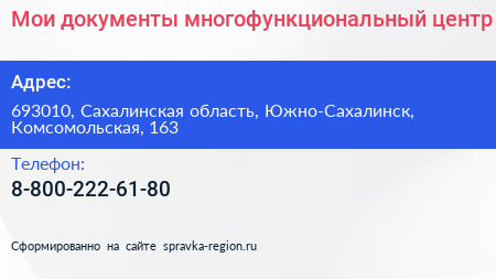 Мои документы, многофункциональный центр по адресу 693010, Сахалинская область, Южно-Сахалинск, Комсомольская, 163 в дальнейшем Организация, размещена в следующих категориях: