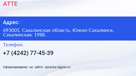 АТТЕ по адресу 693005, Сахалинская область, Южно-Сахалинск, Сахалинская, 198Б в дальнейшем Организация, размещена в следующих категориях: