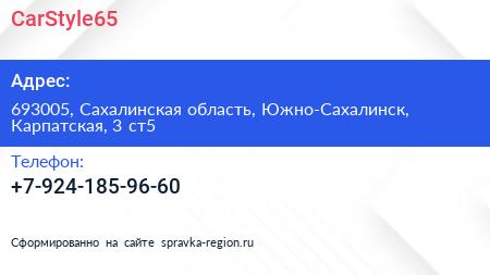 CarStyle65 по адресу 693005, Сахалинская область, Южно-Сахалинск, Карпатская, 3 ст5 в дальнейшем Организация, размещена в следующих категориях: