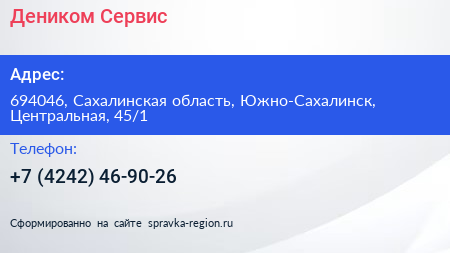 Деником-Сервис по адресу 694046, Сахалинская область, Южно-Сахалинск, Центральная, 45/1 в дальнейшем Организация, размещена в следующих категориях: