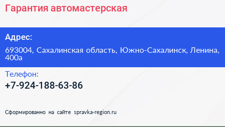 Гарантия, автомастерская по адресу 693004, Сахалинская область, Южно-Сахалинск, Ленина, 400а в дальнейшем Организация, размещена в следующих категориях: