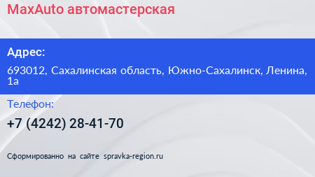 MaxAuto, автомастерская по адресу 693012, Сахалинская область, Южно-Сахалинск, Ленина, 1а в дальнейшем Организация, размещена в следующих категориях: