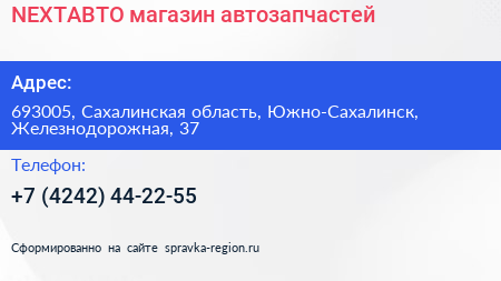 NEXTАВТО, магазин автозапчастей по адресу 693005, Сахалинская область, Южно-Сахалинск, Железнодорожная, 37 в дальнейшем Организация, размещена в следующих категориях: