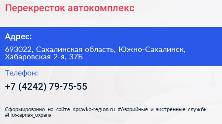 Перекресток, автокомплекс по адресу 693022, Сахалинская область, Южно-Сахалинск, Хабаровская 2-я, 37Б в дальнейшем Организация, размещена в следующих категориях: