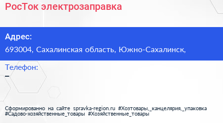 РосТок, электрозаправка по адресу 693004, Сахалинская область, Южно-Сахалинск, в дальнейшем Организация, размещена в следующих категориях: