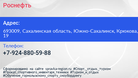 Роснефть по адресу 693009, Сахалинская область, Южно-Сахалинск, Крюкова, 19 в дальнейшем Организация, размещена в следующих категориях: