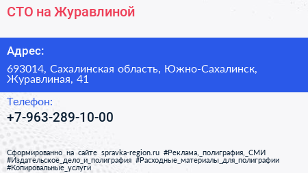СТО на Журавлиной по адресу 693014, Сахалинская область, Южно-Сахалинск, Журавлиная, 41 в дальнейшем Организация, размещена в следующих категориях: